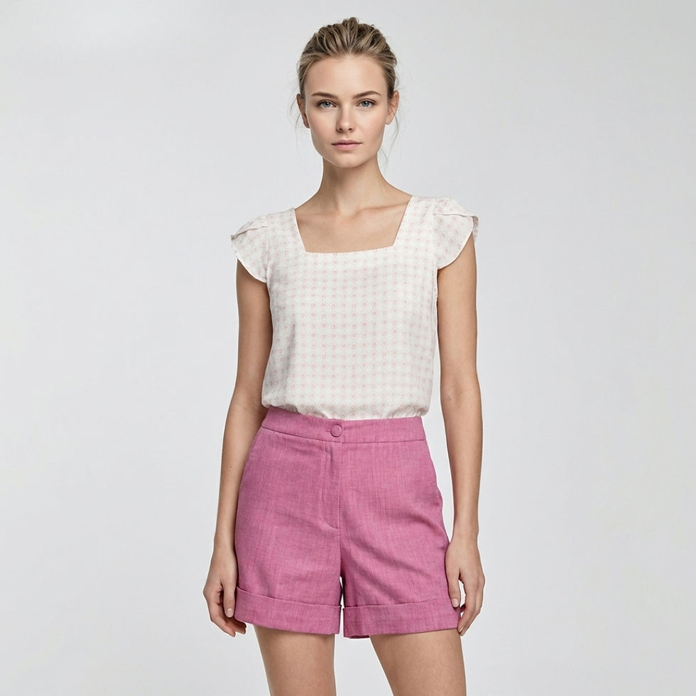 Short com bolsos chapado na parte de traz,bolsos faca na frente ,cós com botao coberto e ziper ,confeccionado no tecido composto por linhas entrelaçadas, o oxford melange que cria um tecido de aparência bonita e elegante com aparência sofisticada e resistente.